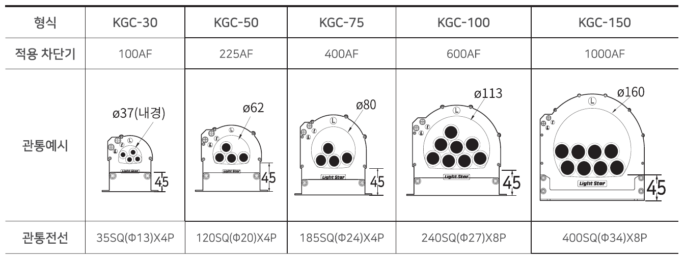 2) 사양선택 : 제품명(관통치수), 누설전류 정격 입/출력 등을 표시