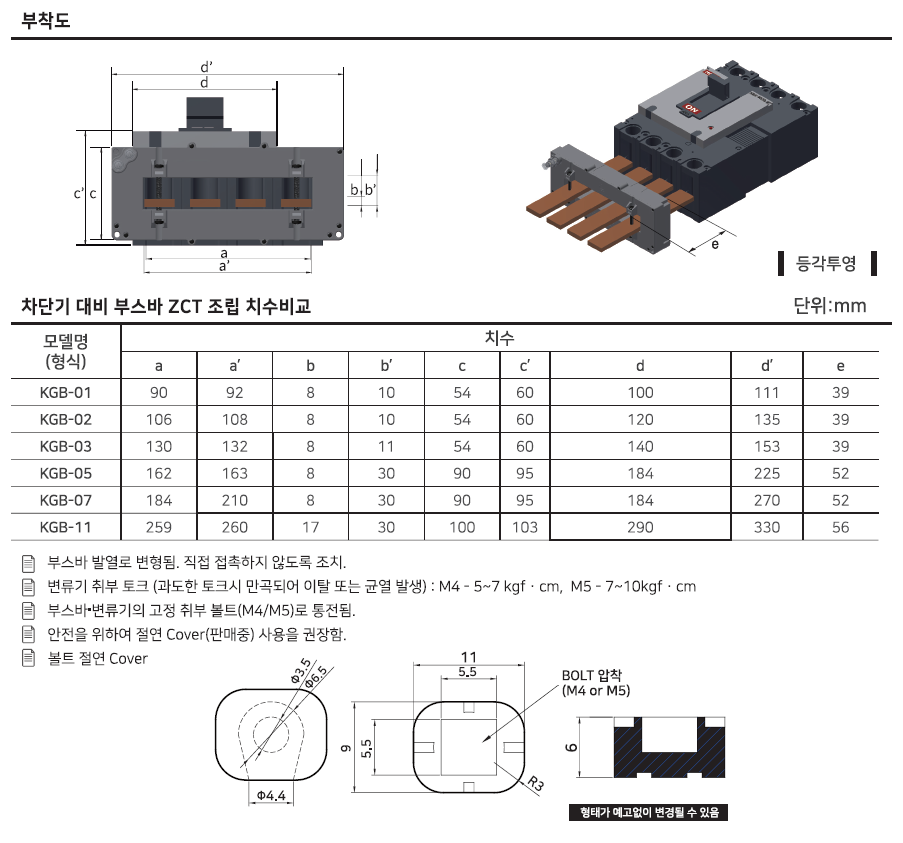 2) 차단기 대비 부스바 ZCT 조립 치수 비교